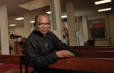 Pater Fadegnon Kobolou Valentin werd geboren in Ivoorkust en kwam in 2023 naar Amsterdam om Afrikaanse immigranten te helpen die een nieuw leven in Nederland opbouwen. Enthousiast wordt hij echter vooral als het gaat over nieuw leven in Christus.